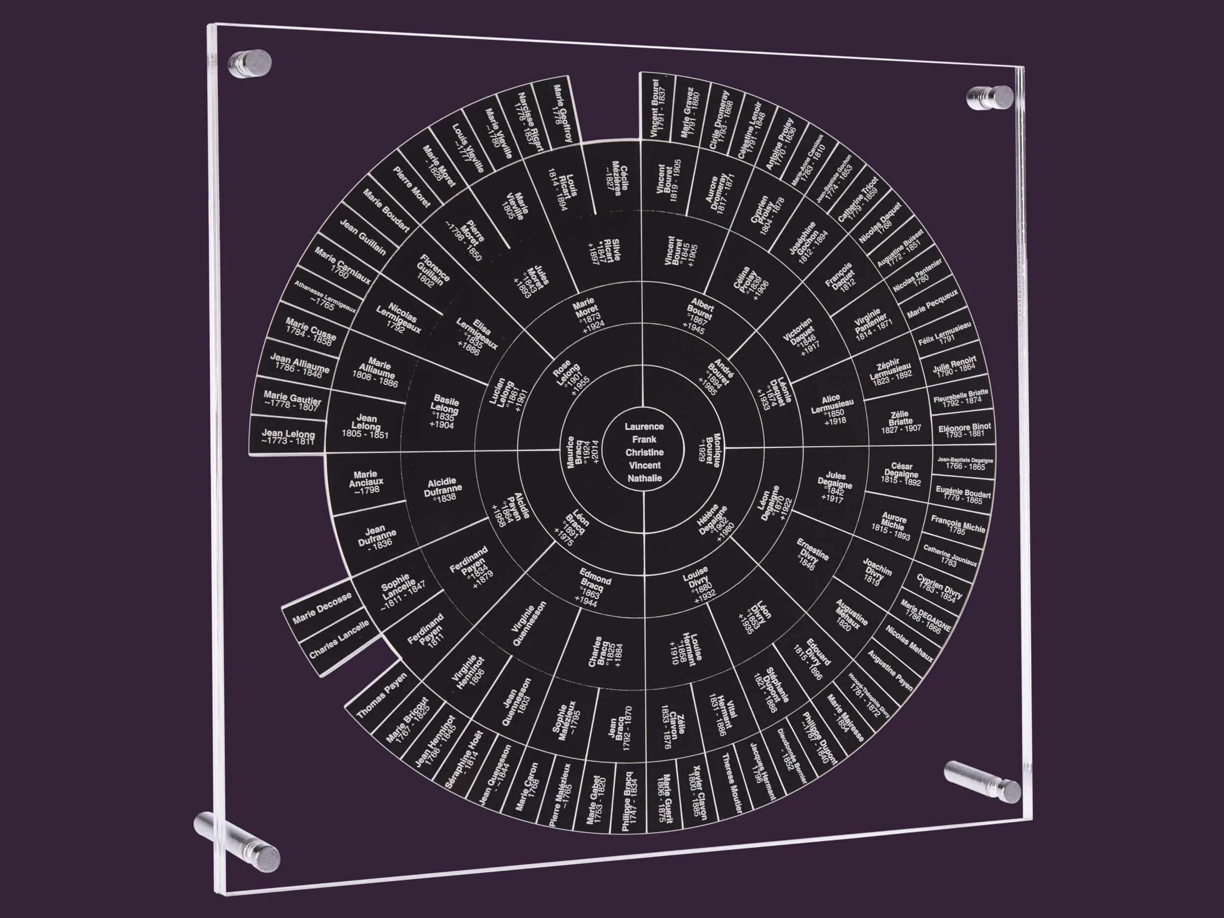 Nos arbres généalogiques en forme d’éventail sont uniques. Parce que chaque pièce illustre l’ascendance d’une personne, d’un couple ou d’une fratrie. Et aussi parce que nous les réalisons de façon artisanale, en usinant exclusivement des matériaux de qualité.